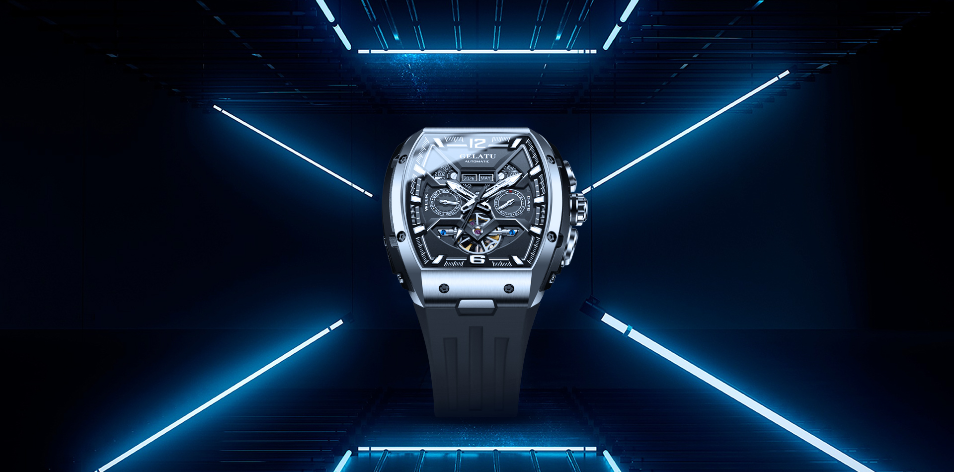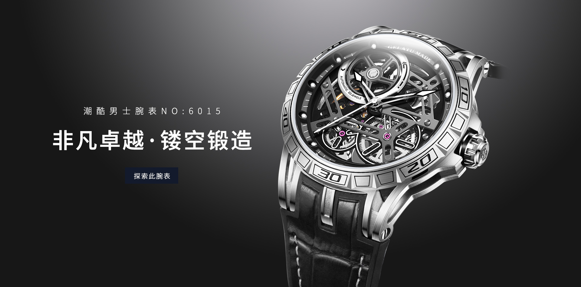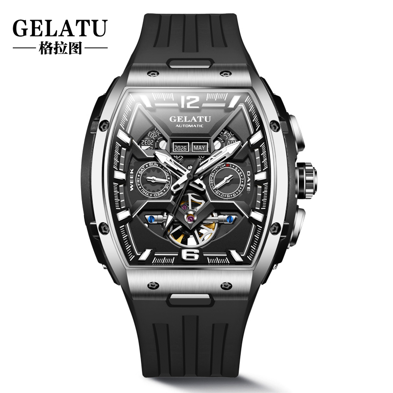 酒桶镂空全自动机械男表