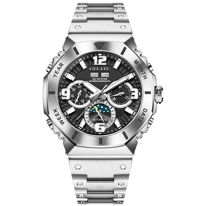 双子星潮流镂空全自动机械男表