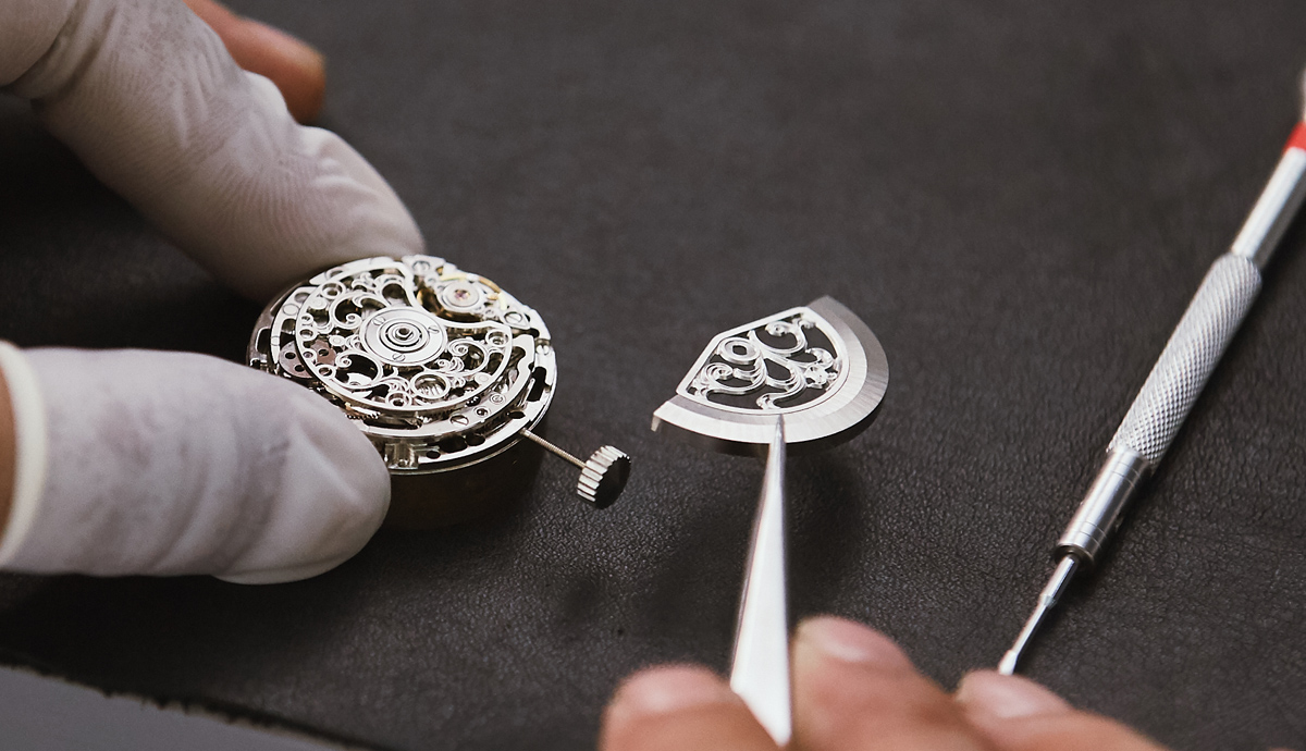 在原厂内组装机芯, 有助于产品质量标准不断提高, 并建立自主生产标准。 手工作业辅以高科技工具让我们的品质不断改进, 在检测方面有着制表业最前沿的技术。